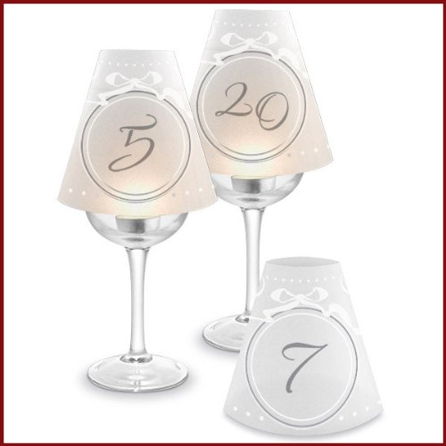 Set the mood at your next event with "Table Number" Wine Glass Lampshades. Transforms a wine glass into a delightful candle lamp that diffuses light and creates a warm, rich glow.