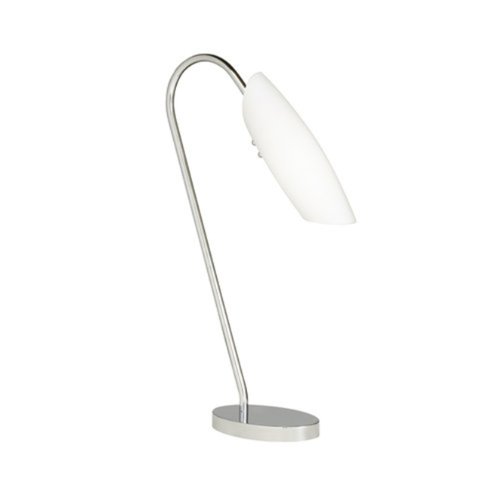 Light Bulb:(1)60w B10 Cand C Incand Stella Desk Lamp Theunique arched support of the Stella Desk Lampbeautifully cradles the curved Satin-Etched Cased Opal Glass with style. Vertical lines and smooth oval shapes are softened just a touch, creating a piece of exceptional flair for any setting. Polished nickel finish On-off, in-line switching