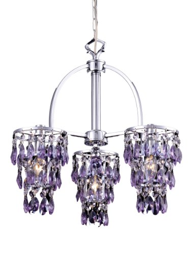GH80296 Features: -Chandelier.-Crystal shade.-Base material: Metal.-On/Off socket. Color/Finish: -Chrome finish. Specifications: -Accommodates (3) 40W E12 candelabra base bulb. Dimensions: -Overall dimensions: 20'' H x 17'' W.